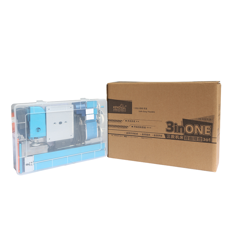 標準(zhǔn)型套裝可(kě)以組成3種不同功能的機(jī)床(金屬鋸床、金屬鑼床、金屬手持機床),一次隻能使用其中1種功能的機床。機床體積小、占用空間少、拆裝容易,安裝不傷手,無性別、年齡(líng)限製,從(cóng)八歲以(yǐ)上兒(ér)童(tóng)到七十餘歲的(de)健康人士都可以操作使用(yòng)及製作模型,配有詳細產品說(shuō)明、模型製(zhì)作教程(chéng)、防護眼鏡、圍裙等,讓您可方便安心地使用。鋸床經過特殊設計,擁(yōng)有安全緩衝(chōng),安全(quán)不傷手,就算是皮膚碰到工作時的鋸齒,也(yě)隻(zhī)會引(yǐn)起輕微的震動,不會鋸傷手,可以放心(xīn)交給學生操作。