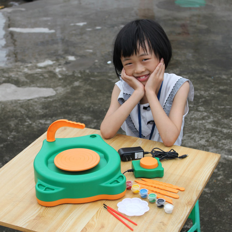 兒童陶藝拉坯機是我們研製開發(fā)的(de)新一代陶藝拉坯機,具有(yǒu)經濟安全、外形美(měi)觀、體積小、噪(zào)聲低、力量大、攜帶方便、技能環(huán)保等特點,它由12V直流電源提供動力,腳(jiǎo)踏式開關,並配備小包裝的陶泥、顏料和(hé)畫筆(bǐ)。是學習陶藝和陶(táo)藝創作的理想(xiǎng)工具。
